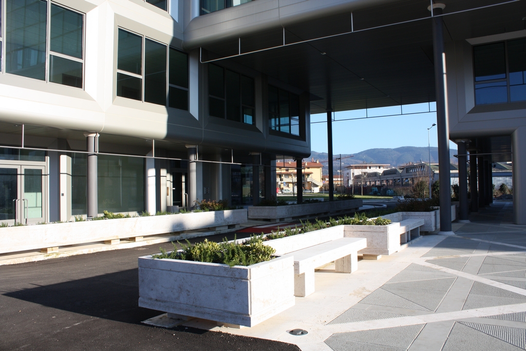 L’edificio direzionale "I" - rappresentante la parte privata di un piano particolareggiato di iniziativa pubblica (Comparto Garbasso, scheda C29) che prevede anche la realizzazione di abitazioni ed il nuovo palazzo di giustizia - sorgerà nel lato nord-est della città, in prossimità delle antiche mura e di un ampio parcheggio pubblico per oltre 400 autovetture, a fianco di un parco ormai secolare e con accesso da quella viabilità, ora previsione di P.R.G., che completerà l’attuale semianulare cittadino